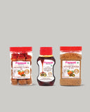 1 Liquid Jaggery (400g) + 1 Jaggery Cube (500g) + 1 Jaggery Powder (500g)